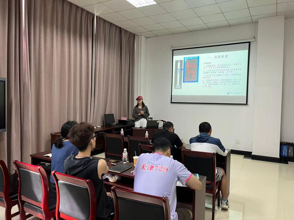 会上,体质测评教研室主任李程程老师就体质健康测试的各项流程与操作方法进行了系统培训,详细讲解了身高、体重、肺活量、坐位体前屈、引体向上(男)/仰卧起坐(女)、1000米跑(男)/800米跑(女)、50米跑及立定跳远等项目的测试规范与注意事项,并重点强调了测试过程中的组织管理、身份核验等关键环节。李程程老师指出,体测工作应始终秉持“安全第一、预防为主”的原则,全体教师需严格遵循测试标准,确保数据采集的准确、公平、客观,同时做好测试前的健康筛查与提示,规范测试流程,切实保障体测全程安全、顺利推进。