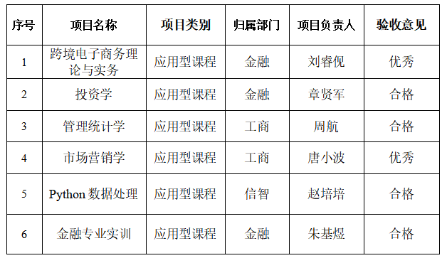 根据《关于对我院行业学院、产教融合示范基地建设专项部分项目验收的通知》(浙财大东教【2025】87号),学院于2025年12月组织校内专家进行了验收评审,验收结果经公示无异议,现予以公布。