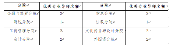 评选名额为各分院2017级、2018级学生班级总数的10%四舍五入,并结合各分院实际专业导师人数所得。名额详见下表: